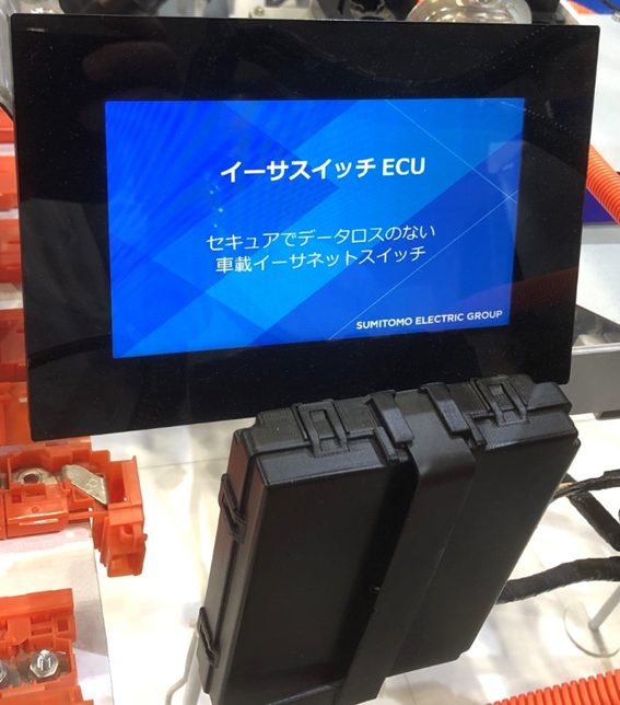 これは車載用ネットワークがイーサーネットになった時のイーサスイッチECU、分かり易く言えば車内ネットワーク用のLANルーターだ。現時点では車載のネットワークにそれほどの帯域も速度も必要が無かったので、イーサーネットという規格は使われていない。だが今後の自動車のCASEという流れの中では必然的に高速・大容量が求められるようになる。