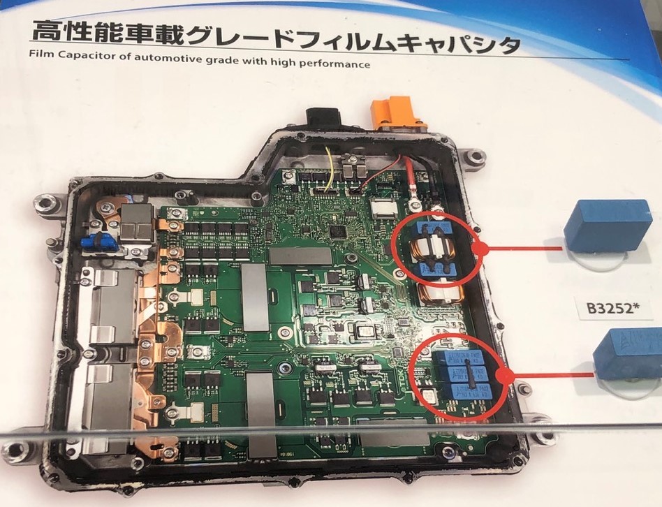 下の写真はTDKのブースで見つけたAUDI向けの「DC-DC Converter」の分解モデルある。上の写真のものとは異なるものだが、右奥のが同じく「DC-DC Converter」であり、あれを分解しても同じような中身が出て来る筈だ。TDKはその中の電子部品を作る会社なので、中身を見せなければ展示する意味が無い。ご覧頂けるように、パソコンの内部のようなイメージでは無かろうか?