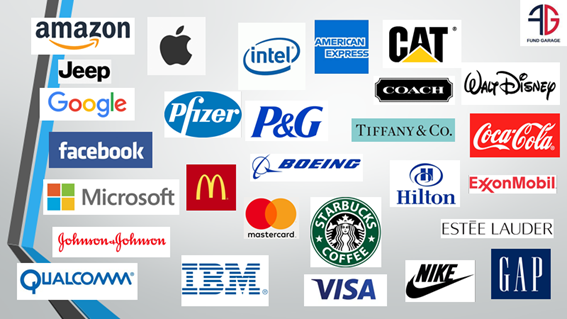 試しに思いつくままに、身近な米国企業のロゴマークを集めてみたのが下の図。