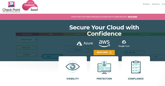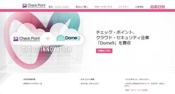 この業界は合併や買収が多い分野であり、マイクロソフトなども過去に何度もセキュリティ企業を買収していますが、チェック・ポイント社のトップページにも、クラウド・セキュリティ企業「Dome9」を買収したことが伝えられています。不思議なことに、セキュリティ企業はイスラエルの企業が多いのですが、チェック・ポイントもそうなら、このDome9もイスラエル、マイクロソフトが買収したCloudy社というのもイスラエルです。理由はよくわかりませんが。