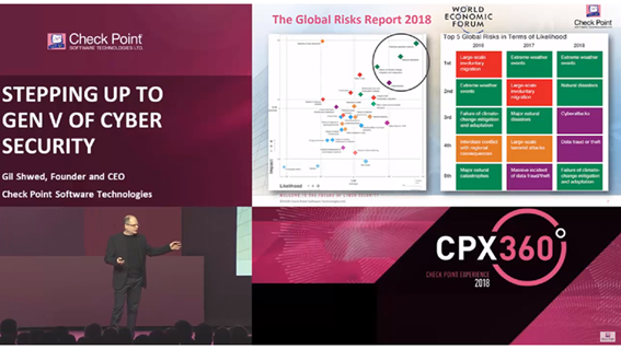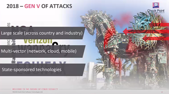 あっちこっち探検して回る場所は多いのですが、第5世代のサイバーセキュリティに対する考え方と備えについて、CEOのプレゼンテーションがありました。こんな感じで始まります。残念ながら、イスラエル訛りの英語ですが、充分分かり易いです。