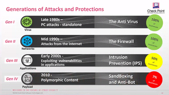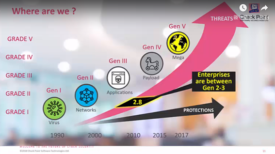 しかし、状況は既に第5世代の脅威が始まっていますが、企業のそれは平均すると2.8世代あたりで止まっています。
