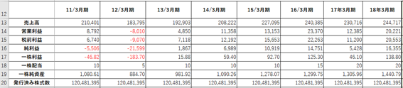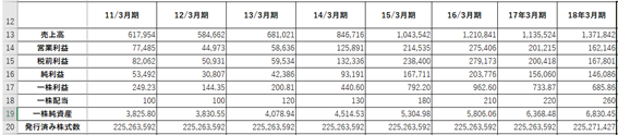 太陽誘電は11年3月期、12年3月期に赤字を計上しており、17年3月期もかなり厳しい状況であったことが伺える。以下に両社の過去の決算状況をお示しする。