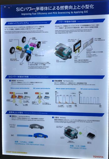 同じ意味のものなのだが、写真の右下に注目して欲しい。ロームのブースで出展されているものに「TOYOTA」の文字が見えるだろうか。