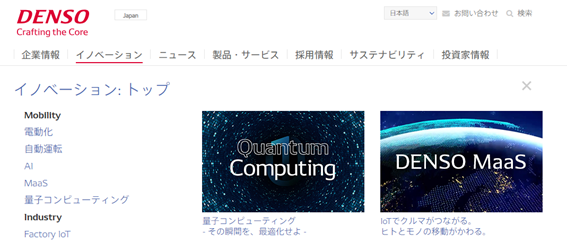 まずはデンソー(6902)のWeb(https://www.denso.com/jp/ja/)だが、ドンピシャリ、暫く私は同社のWebサイトを回遊する羽目になった。兎に角見ていて面白い。特にイノベーションというところは最高に見ていて飽きない(https://www.denso.com/jp/ja/innovation/)。