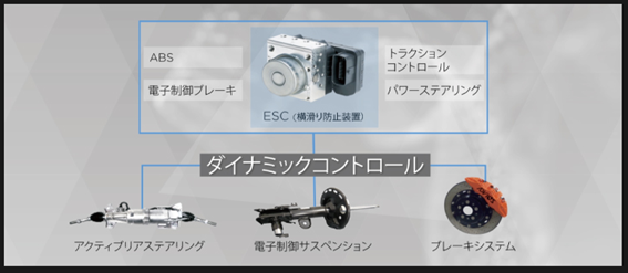 ただESC(Electric Skid Control:横滑り防止装置)自体は目新しくはない。この目新しくないものが進化している/進化していくことが自動車では大切なこと。つまり、徐々に時間を掛けてその信頼性を確認し、高めていくということだ。新商品を発表後、OSのバグが見つかり、即座に対策品にアップデートをお願い出来るパソコンやスマホとは、この辺りの時間軸が全く異なる。