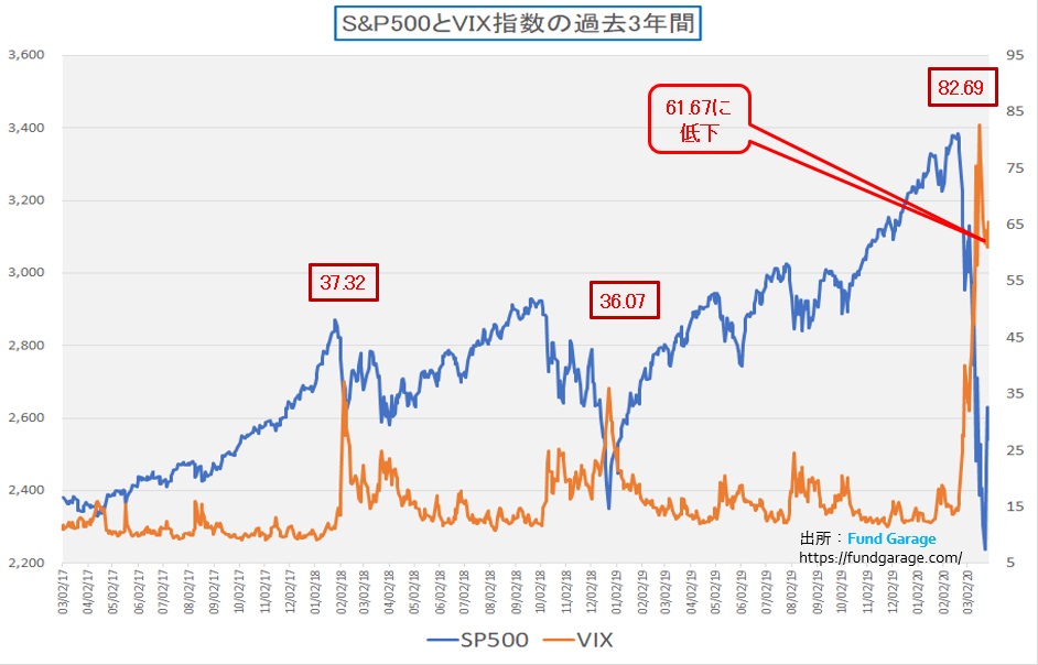 それよりも大切なことは、先週の動きでひとまず市場は底値を確認したと見れることだ。その根拠は下記のチャートだ。S&P500とVIX指数の対比チャートだが、リーマン・ショック後の高値を超える水準までVIX指数は跳ね上がった後、S&P500は切り返している。