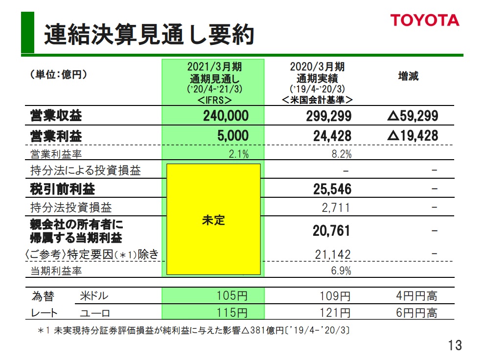 (出所:トヨタ自動車2020年3月期決算 決算説明会資料13ページ)