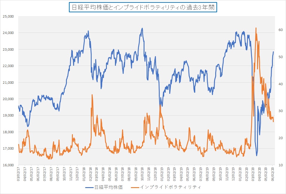 こんなにきれいなチャートになるのも珍しいぐらいだ。恐らく、急騰したボラティリティの水準が非常に高かった事が要因だと思われる。