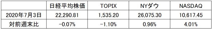 市場はかなり歪(いびつ)な動きを呈している。恐らくパッシブ運用にポートフォリオを委ねている人は、あまり幸せな結果にはなっていないであろう。逆に、アクティブ運用、というより個別銘柄の選定に精を出している投資家は、上手く波に乗れていれば相当な利益をこの3か月で挙げている筈だ。先週の動きだけを見ても、NASDAQは+4%の動きとなった一方、TOPIXは逆にマイナス△1.10%と、その差は僅か1週間で5%を超える。ただ、下の表を見て安易に「そうか米国株だな」と思った人には残念だがドル円が△0.6%足を引っ張るように円高に動いていることをお伝えしないとならない。だが、これこそが「ニュー・ノーマルの時代」に向けた変革、既存の体制が変わりゆく軋みなので、今は最も投資の醍醐味を味わえる絶好の時だ。