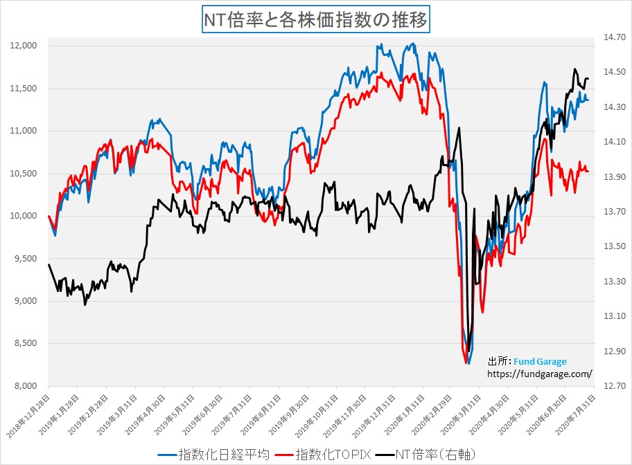 何度もお見せしているので、注釈はそんなに必要ないと思われるが、先週末のNT倍率は14.46倍。前週末の14.42倍よりも更に乖離は進んでいる。このチャートを見ていると、どっちが擦り寄って均衡点を見出すのか、非常に興味を持って見守っている。TOPIXに擦り寄るか、日経平均に擦り寄るか。それによって大分市場の印象は違ってくる筈だ。