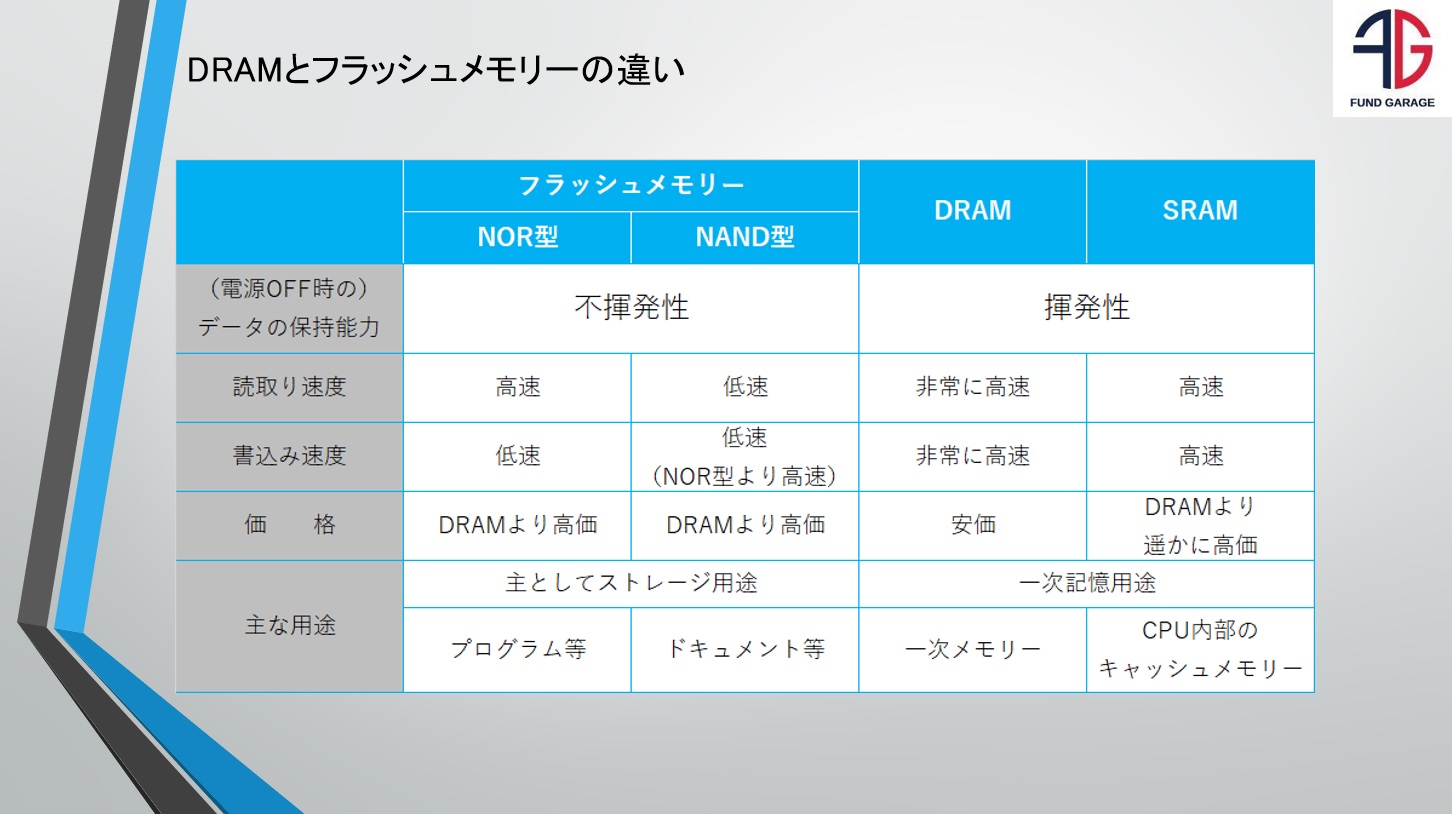 今後の流れとしてフラッシュメモリーとDRAMの両方の特性を持つメモリー半導体の誕生
