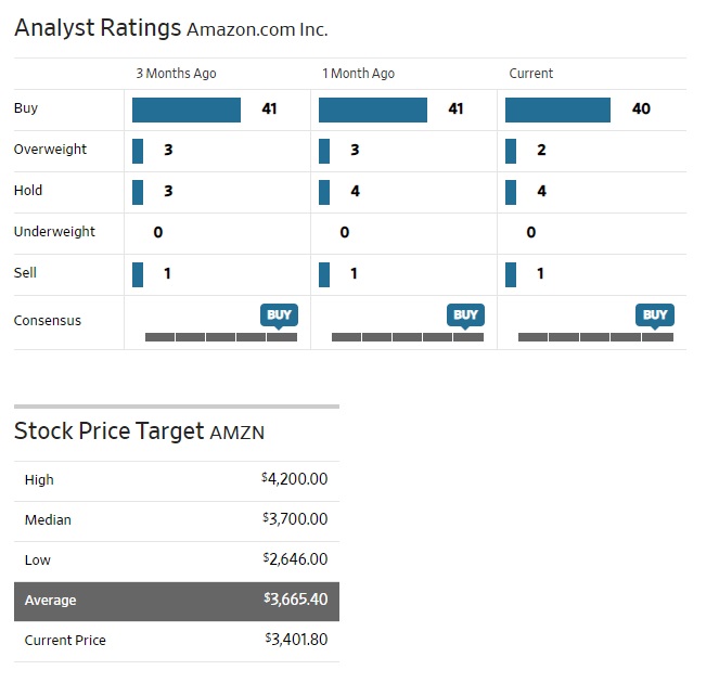 最近この手の銘柄が増えたなと思うが、アナリストの目標株価の引き上げが実勢株価の状態に追いついていけない銘柄のことである。代表例がアマゾンドットコム(AMZN)だ。足許でこそ平均値が$3,665.40と、週末の実勢価格$3,401.80を上回っているが、株価の方がアナリストのターゲット設定よりも上になってしまっている銘柄は、案外多い。