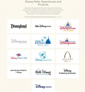 大前提として、Walt Disney Co.のコンテンツとは何か程度は調べてみて欲しい。まさかミッキーマウスとミニーだけと思っている人は少ないと思うが、上記の各セグメントが何を意味しているのかは、下記の図を参照して貰う方が早いだろう。若しくは直接同社のWebサイトに飛んでみて欲しい。私が自分で撮影してきた写真と同じ景色がトップページとなっている。(https://thewaltdisneycompany.com/) 投資家としての情報が見たければ「Investor Relations」をクリックしてみれば良い。