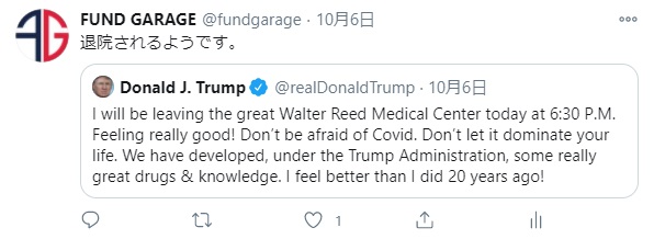 FG Premium Report 10月12日号(トランプ大統領生還で流れは好転した)