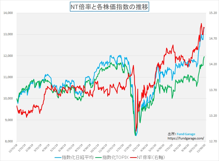 ただお陰で一旦少し下がったNT倍率は再び下記の通り、上昇してしまっている。私は経験則的にNT倍率の上昇はあまり好きではない。つまりいつ反転するか分からないからだ。NT倍率の上昇は、主に先物プレイヤーが日経平均先物を買い上がることで示現する事が多い。以前にもお話した通り、日経平均株価は非常にマニピュレートし易い指数だからだ。