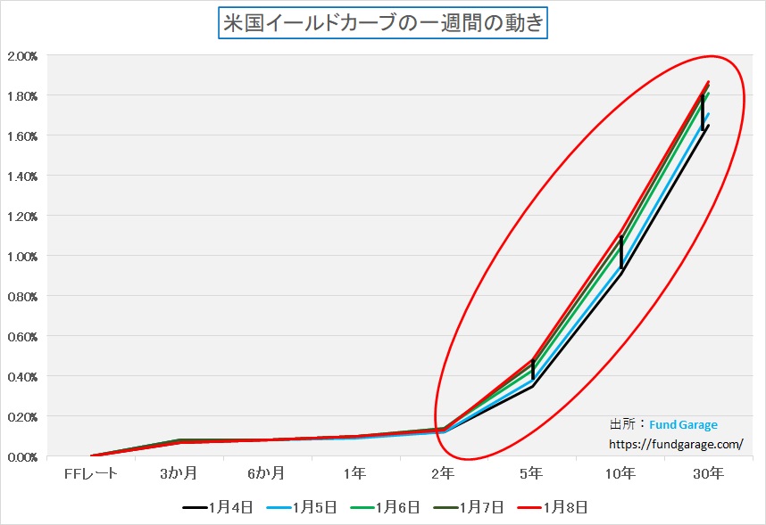 私が今の市場のセンチメントのインディケーターとして注目している市場が2つある。ひとつは米国債券市場だ。FFレートはFRB(中央銀行)がコントロール出来るが長期金利は債券市場が決める。金利は「経済成長率+期待インフレ率の和」という大前提で考えれば、今のこの局面で米国債の長期金利が上昇してくる(債券は売られている)のは、市場が先々の景気回復に自信を持っていることの証だ。下に今年に入ってからの米国債イールドカーブの変化を示す。10年債の金利は、年初0.910%で始まったが、週末には1.120%まで上昇し、カーブはスティープ化してきている。