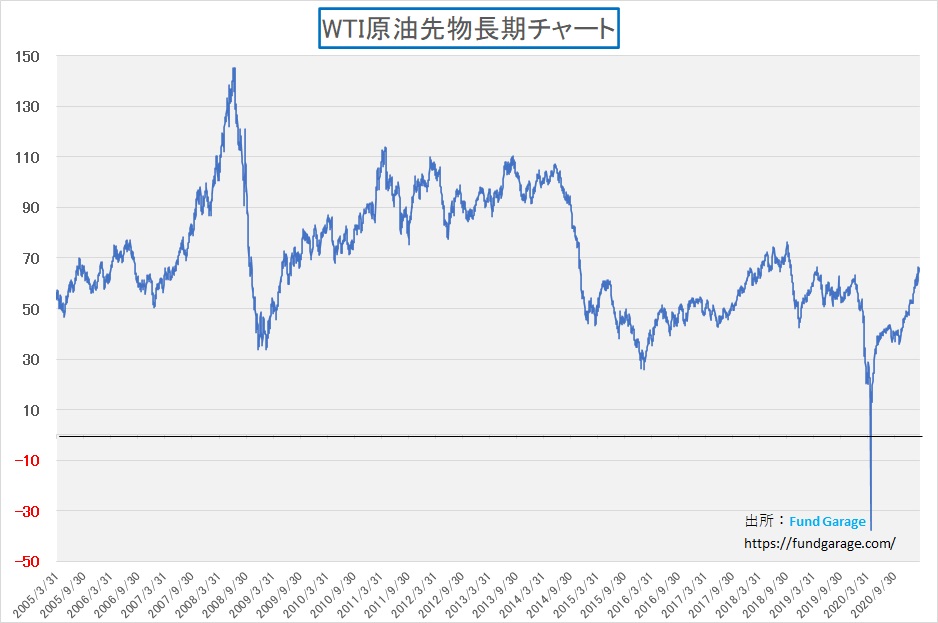 もうひとつ気になるのが、原油価格の動向だ。このところ「脱炭素社会」などの話題もあり、本来化石燃料に対する需要見通しは低下しても良いとも思えるのだが、景気回復に伴う需要増と減産体制とがあいまったのか、原油価格が上昇している。それもジリジリと下値を切り上げている感じなので気味が悪い。下記のチャートを見ると、1バレル50ドル以下というのはかなりヒストリカルにも安い水準だと見て取れるが、足許では2019年4月23日の高値66.30ドルをも超えそうな勢いとなっている。また足許の円安も手伝ってか日本国内でのガソリン価格が上昇している。また中国が豪州産石炭による火力発電から天然ガスによる火力発電に切り替えようとしている動きもあり、天然ガス価格も上昇している。これらを合わせると、電力価格の上昇が大きくなり景気のマイナス要因と成りかねない。原油価格の動向は注視しておく必要がありあそうだ。