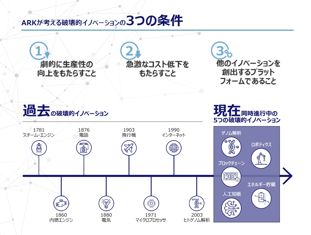 ただ個人的には私は同社の言っていること、志向していることに間違いは無いというか、同じような方向でものを考える。下記に日興AMのWebに掲載されているARKの考え方のページをお見せする。正にこうした視点に適うものこそ、投資で高い収益をあげられることは確かだ。ただ当然ながら分析には手間暇かかり、冷静沈着であることが要求される。下記の画像から日興AMの該当ページにジャンプ出来るようにしてあるのでご参考まで。