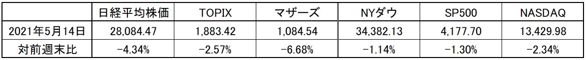 それらを含めて、先週の日米株式市場の騰落率は下記の表の通り。先週の市場波乱要因は米国のインフレ懸念であった筈だが、蓋を開けて比較してみると、日本市場の方が傷みが酷い。どうやら米国市場の下落と、日本市場の不甲斐なさとは要因は違うというのが私の見立てだ。