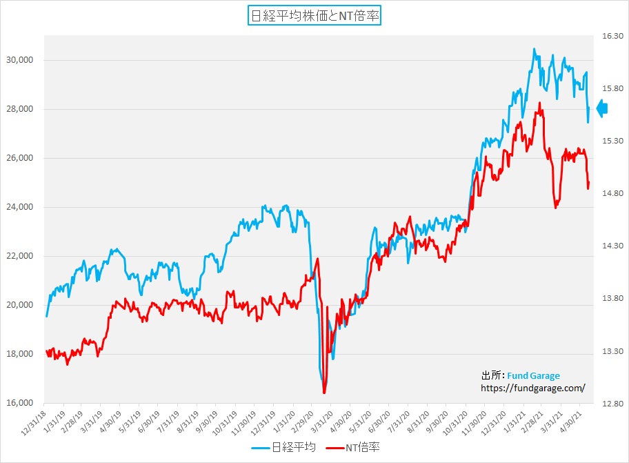 もうひとつ改善して市場の歪みが取れてきているのが、日経平均だけが高いというような状況では無くなってきたというものだ。それはNT倍率のチャートを見ればわかるが、これもだいぶ低下してきた。