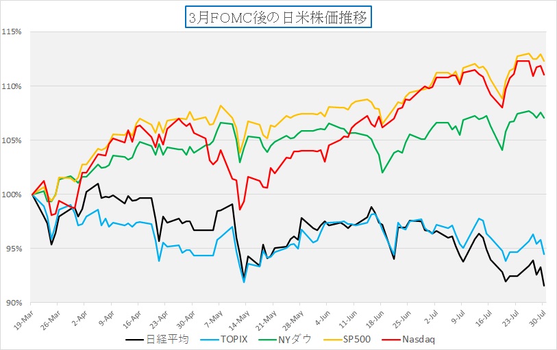 日本のアンダーパフォームは3月のFOMC後から顕著