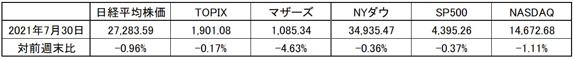 日本が連休中の米国市場が堅調だったこともあり、日本市場も先週は堅調に推移することが期待されたが、蓋を開けると日本市場は持ち堪えることが出来ずに終わった。決算発表シーズンではあるが、発表された決算で何か市場にネガティブなショックを与えたものがあるかと言えば無い。「amazonショック」(詳細後述)などと語るコメントも散見されたが、それは的外れな見解かと思われる。最大の懸念事項はやはり新型コロナウイルスの感染拡大で、デルタ株についての問題がやはり世界中で警戒感を醸し出している。そして日本は結局「緊急事態宣言」の呪縛から逃れることが出来ず、途絶えることない「緊急事態」が8月末までは少なくとも続くこととなった。既に「緊急」意識は殆ど無い。恐らくこの影響が非常に大きいだろうと思われる。結局、日本は7月末で日経平均株価の年初来騰落率がマイナス圏に突入した。