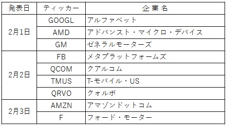 ※お詫び:前回、AMDの決算発表日が間違っておりました。正しくは2月1日ですので宜しくお願い致します。