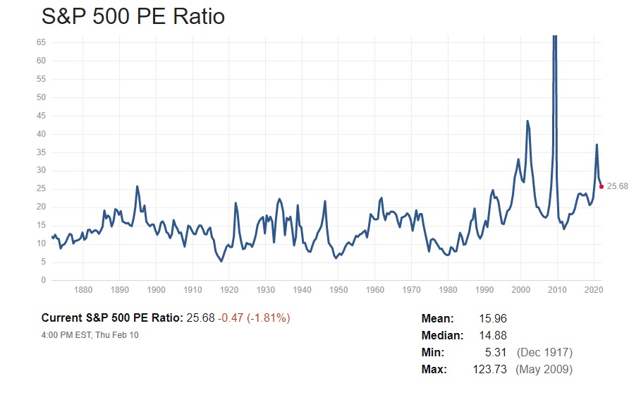 株価が上がってくると必ず頻繁に耳する話の一つが「株価はバブっている」という悲観論。何を論拠にバブルと言っているのかは知らないが、上昇する株価に何か恨みでもあるのかと聞きたくなるほど、必ず「バブル」という表現があちらこちらで踊り始める。だが最も伝統的で、オーソドックスなバリュエーションであるPERで確認すると、現状の株価は割高だとは言えない。その証左が下記のチャートで、少なくとも私はそう考える。明らかに2000年前後のドットコムバブル(日本ではITバブル)の時とは、その水準が違う。