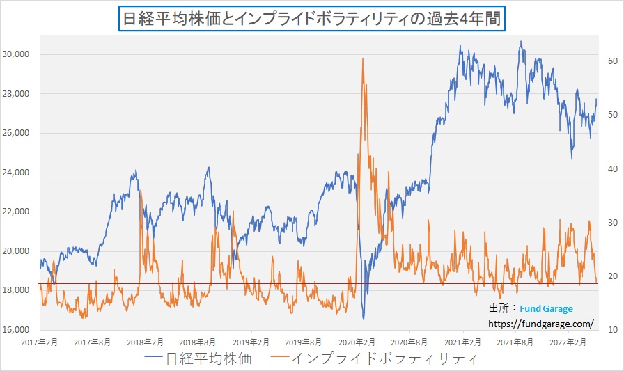 何度も株価とインプライド・ボラティリティの話はさせて貰っているが、実は日本株市場のそれがあまり居心地の良い状態ではなくなってきているのでご紹介しておく。今すぐにどうのということにはならないだろうと思うが、株価の戻り幅とは裏腹に、少なくともパンデミック後のインプライド・ボラティリティの水準としては割と低いレベルに低下してきてしまった。株価の反転が大きく無いにも関わらず、それ以上にボラティリティが下がっているのが気になる。これは何かポジティブな材料が出た時に「慌てふためいて買い戻し走る」投資家(ヘッジポジションを持っているなど)が少ないということだ。確かに足許の日本株の戻りは嬉しい反面、ボラティリティの低下に見合うほどではなく、また、その理由も明白ではない。