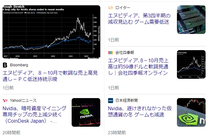 現地25日の米国株式市場、前日引け後に決算発表を行ったエヌビディア(NVDA)の株価は+4.01%もの上昇となった。この展開を決算発表直後に予想した市場関係者は本当に少ない。事実、同社の株価は決算発表後には△4%-5%の間で叩き売られていたのだから。またその決算内容を伝えた各種メディアの見出しは、普通に読めば悲観的な側面だけを伝えており、また最近の「決算発表と市場予想にズレがある時」の市場反応の激しさから考えれば、25日の株価は引け後取引の急落以上に叩き売られても何ら不思議では無かった。各紙の報じた見出しの一部はこんな感じだ。