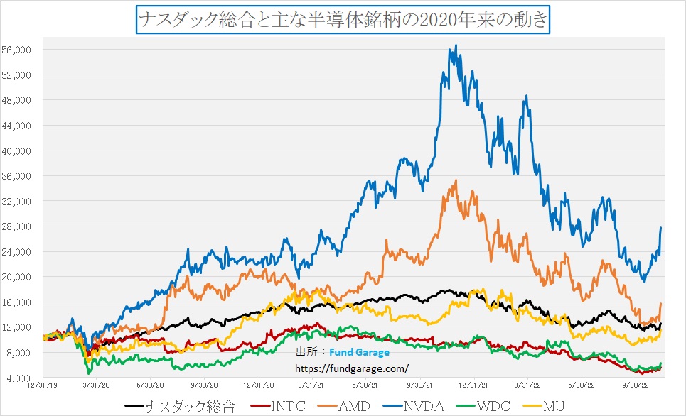 このところ「金利上昇に弱いグロース銘柄」という捉え方で、その典型的な存在として考えられているハイテク銘柄の中心、半導体関連銘柄については、「パソコンやスマホが売れていない」というネガティブな情報が流布され(ローエンド物、或いは旧モデルのパソコンが売れていないのは事実)たことで、市場は弱気に傾いていた。当然、金利上昇と言うのも向かい風だ。
