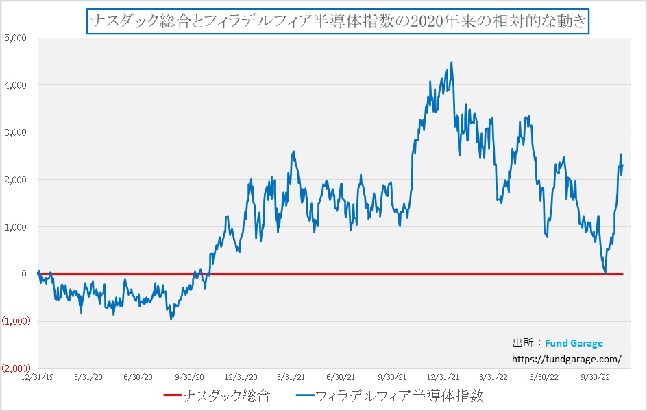 ナスダックとフィラデルフィア半導体指数の関係