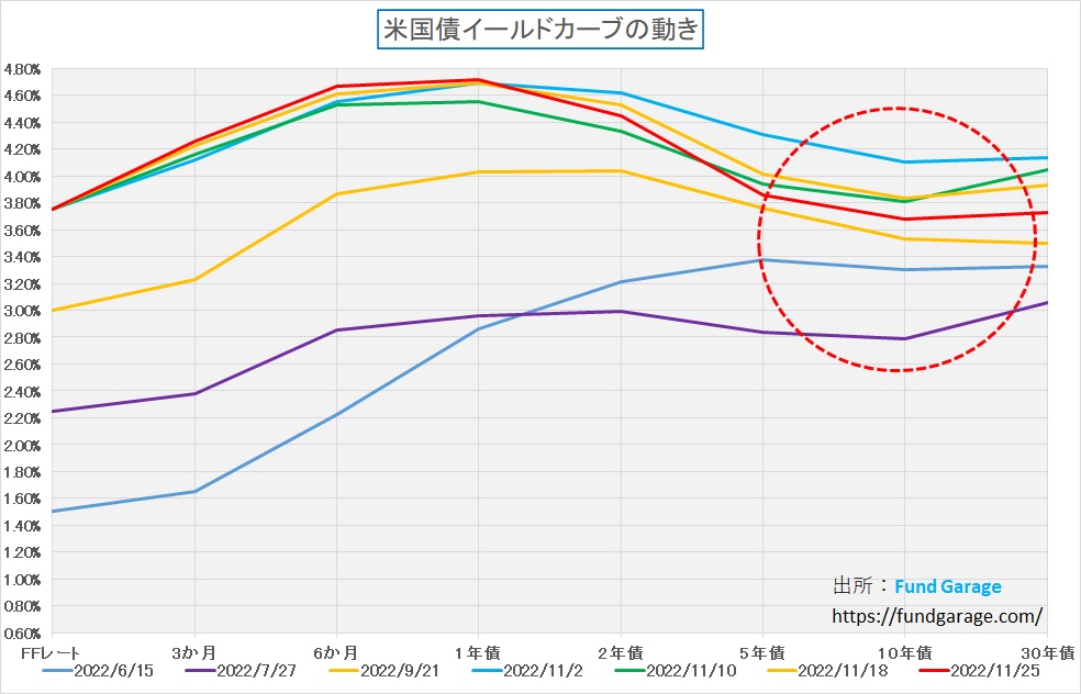 今現在、市場が腹を括っているFOMCの方向性は12月は0.50%の利上げ、その後は恐らく0.25%の利上げが2回程度という感じだろう。もし来月のFOMCで0.75%の利上げが見込まれるようなことが起きれば、恐らく市場は再び悲鳴を上げる。ただ次回が0.50%と予想しているところが0.75%になったとしても、そもそも来年以降に0.25%の利上げを複数回は読んでいるので、実は衝撃は短期で癒される可能性の方が高い。寧ろ怖いのは下記のような話が具現化してくることだろう。