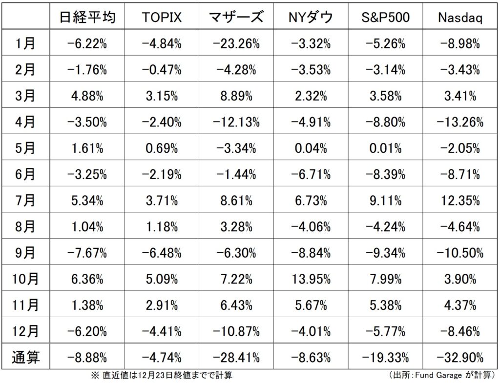従って、ヘッジポジションの買戻しという需給はこの下落の水準からは発生しない。だがポイントは、今はクリスマスであり、これから年末年始でCY2022からCY2023へと変わることだ。今、下落する米国株式をみながら「CY2023の発射台は低くなって、パフォーマンスを挙げ易くなりそうだ」と笑顔で七面鳥を頬張るファンドマネージャーは案外多いと思われる。