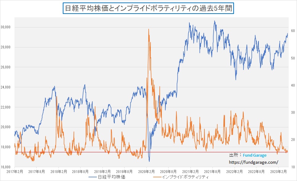 だとすると最後に気になるのは、市場のエネルギー、熱狂度合いを示すとも言える日経平均のインプライドボラティリティの水準なのだが、これも残念ながら、サポート材料というよりは、寧ろネガティブな印象を受ける内容だ。ご覧頂ける通り、現状の日経平均インプライドボラティリティは15.78と遂にこの5年間、つまりパンデミック前も含めてかなりヒストリカルにロー(低位)・レンジな方に入っている。経験則的にはここからスルスルと日経平均30000円越えとなるよりは、一旦は28000円残半を試してインプライドボラティリティの上昇を得てからとなる可能性の方が高い。ただこれはあくまでも数字遊びの世界なので「ほっかむりして隠れる準備」程度にこれだけならば考えておけばいい。ただ前述の通り、バリュエーション的にも褒められた水準では無い以上、あまり安穏としているのも気になるところ。