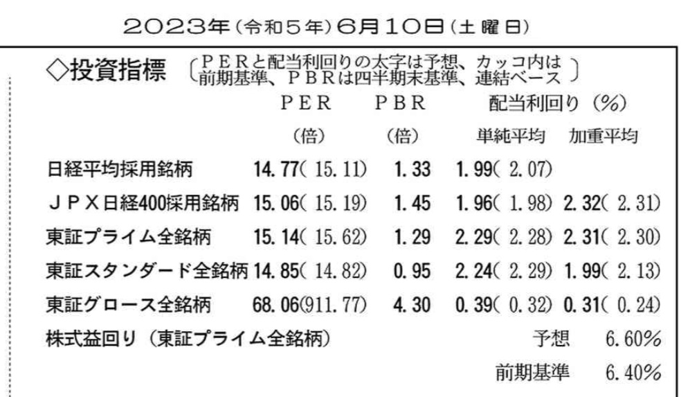具体的な数値の方は、下記の図の方が分かり易いだろう。日経新聞朝刊のマーケット面だ。