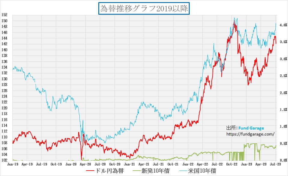 そして今週、推論は当たらずし遠からずだということが確認された。それが先週一週間分を書き足した次のチャートだ。前回から僅か1週間でしかないが、米国10年債利回りは先週に入ってからは一貫して低下した。前週末が4.060%だったのが、先週末は3.830%だ。その一方で、僅かながら日本の10年債利回りも0.445%から0.475%へ上昇している。つまり、日米の金利差が縮小したことになる。これを受けて円が買われたというロジックは合理的に筋が通る。また10日に財務省が発表した5月の経常収支(モノやサービスなどの取引状況を表す)が1兆8624億円と、4カ月連続の黒字を記録し、前年同月では2.4倍にも拡大したことも円買いを後押ししただろうと思われる。これで金利と為替の関係は適切なロジックで「ガッテン」と私は頭の中で手を叩くことが出来た。