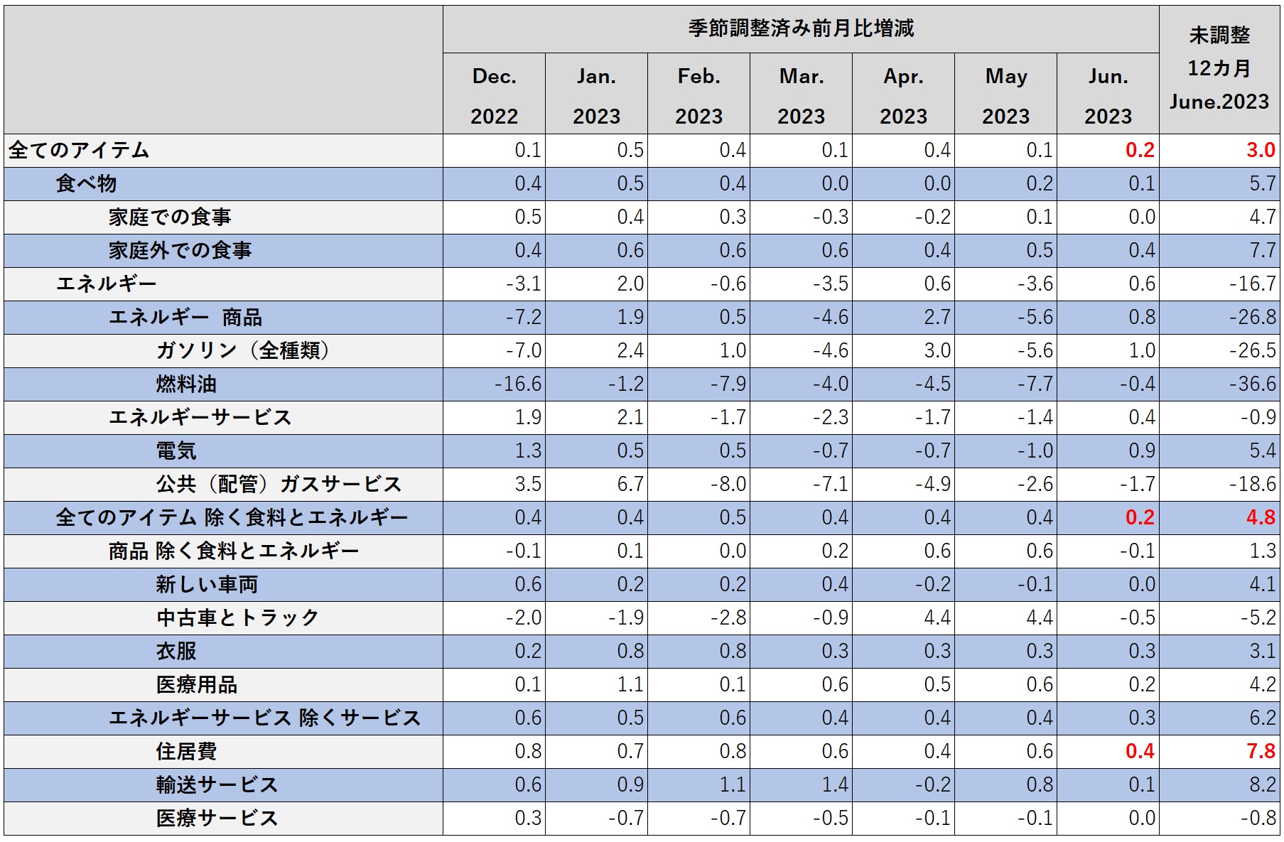 まず全てのアイテムを含む総合CPIは過去2年余りで最も低い伸びとなり、市場予想の3.1%上昇をも下回る前年同月比3%の上昇となった。また変動の大きい食品とエネルギーを除くコアCPIは2021年終盤以来の低い伸びとなった。こちらは市場予想の5%上昇に対して前年同月比4.8%上昇、前月は5.3%の上昇なので、これは結構なインパクトと言える。