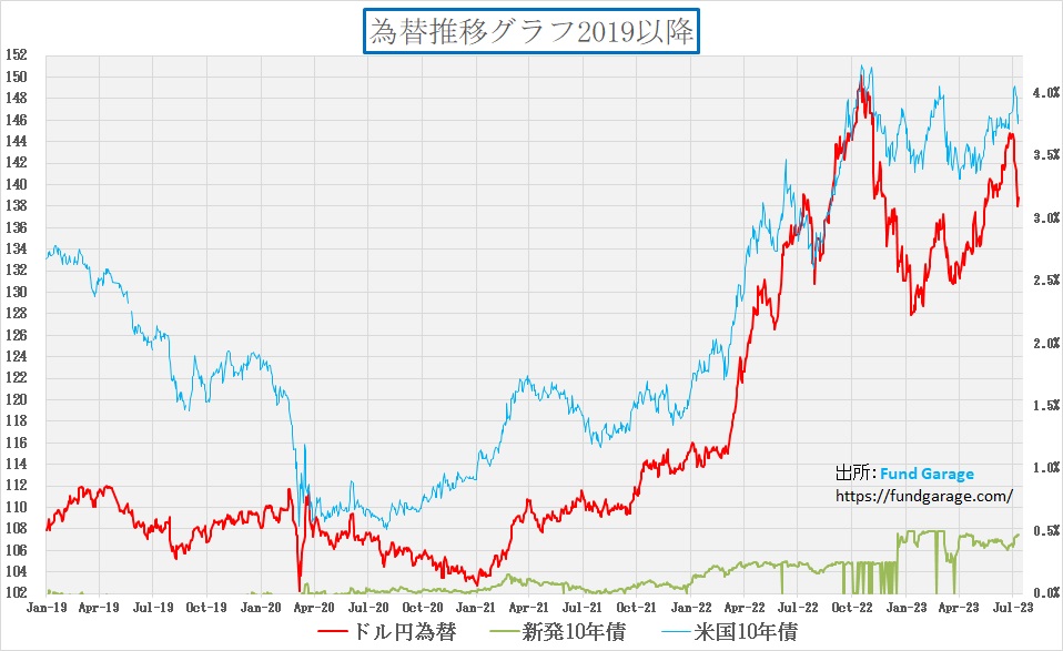 実は前回時点では為替と金利の足元の動きは下記の通りだった(チャートの右端に注目)。すなわち米国長期金利は上昇、その一方でやや円高に動き始めている感じだった。これを受けて「日米の金利差は拡大した訳だが、ドル円相場はセオリーに反して円高に動いている」とお伝えし、自分の頭の中で合理的なロジックを組み立てられないこともお伝えした。唯一の妥当な推論として、為替の投機筋による「日銀の金融政策変更期待」によるポジション調整という推論をお伝えした。再度、前回掲示した下記のチャートをまずは確認して貰いたい。