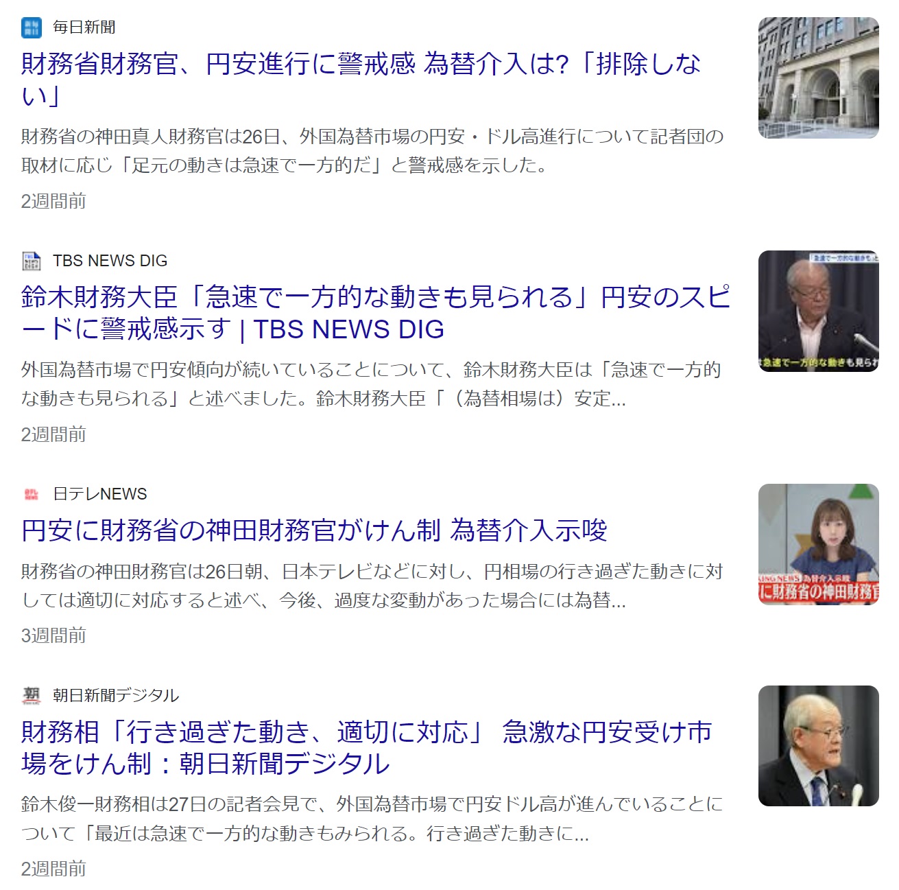 考えるべき点のひとつは137円-138円台といったドル円水準は円高と呼べるのかどうかということ。145円台に入ってジリジリと円が下落していた2週間程度前には「鈴木財務大臣「急速で一方的な動きも見られる」円安のスピードに警戒感示す」といったヘッドラインが下記のようにズラリと並んでいたのは何だったのだろうか。もし、ここに利上げなんて話が加われば、日本経済に何が起きるかは火を見るよりも明らかだ。