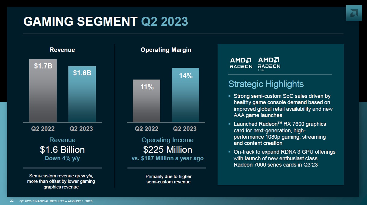 このセグメントの特徴は、季節性があり、当然「馬鹿売れソフト」があるか無いかによって大きな違いがでる。右側にコメントがあるように、どうやら新しく※「AAA Game」がローンチされるようだ。また新しいRadeonブランドのGPUもゲーマーに向けに投入される。