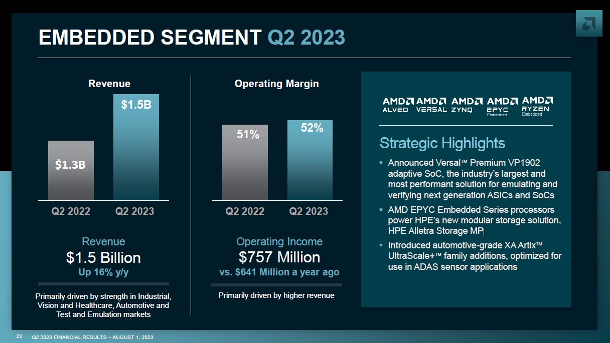 次に大きなセグメント言えば、Data Centerではなく、Embeddedということになる。恐らく、Data Centerセグメントが右肩下がりなっていることが単純に深堀されずに放置されているように思うが、このEmbeddedというセグメントこそ、或る意味ではAMDの真骨頂であり、アマゾンドットコムのアンディ・ジェシーCEOが話したことにも符合する強みを発揮する部分だ。みてみよう。