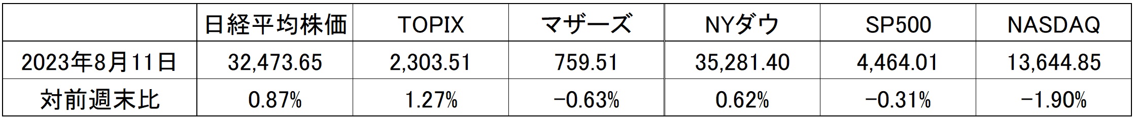先週一週間の日米株式市場の各インデックスの騰落率は下記の表の通り。日本株のTOPIXが1.27%の上昇となる傍ら、米国株NASDAQは△1.90%の下落となった。またフィラデルフィア半導体指数ことSOX指数は△4.99%の下落となり、かなり市場毎の跛行色が強い展開となっている。簡単な言い方をすると、見ている株価指数、投資している運用スタイル、アクティブ運用かパッシブ運用か、或いはETFか個別銘柄か、といったことで随分と週末を迎える気分が違っていただろうということだ。当然のことながら、日経平均やNYダウといった株価指数の終値を新聞などだけで脇目で追っている人と、個別に銘柄を追って、例えば「生成AIの未来に投資」と真摯に市場と向き合っている人とでは、更にその開きは大きくなる。前者は安穏としているだろうし、後者はややソワソワし易い状況なのではないだろうか。