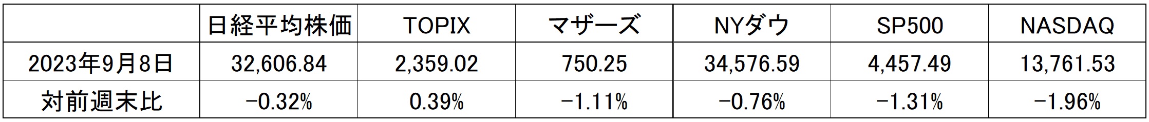 まずは先週の各市場の騰落率から確認しておこう。日本株のTOPIXを除いてマイナスの騰落率となった。米国市場のそれは、NASDAQの下落が一番大きくNYダウが小さいパターン。だからこそ、日経平均もマイナスになっている。つまり、ハイテク株が売られたという一言で片付く状態だ。