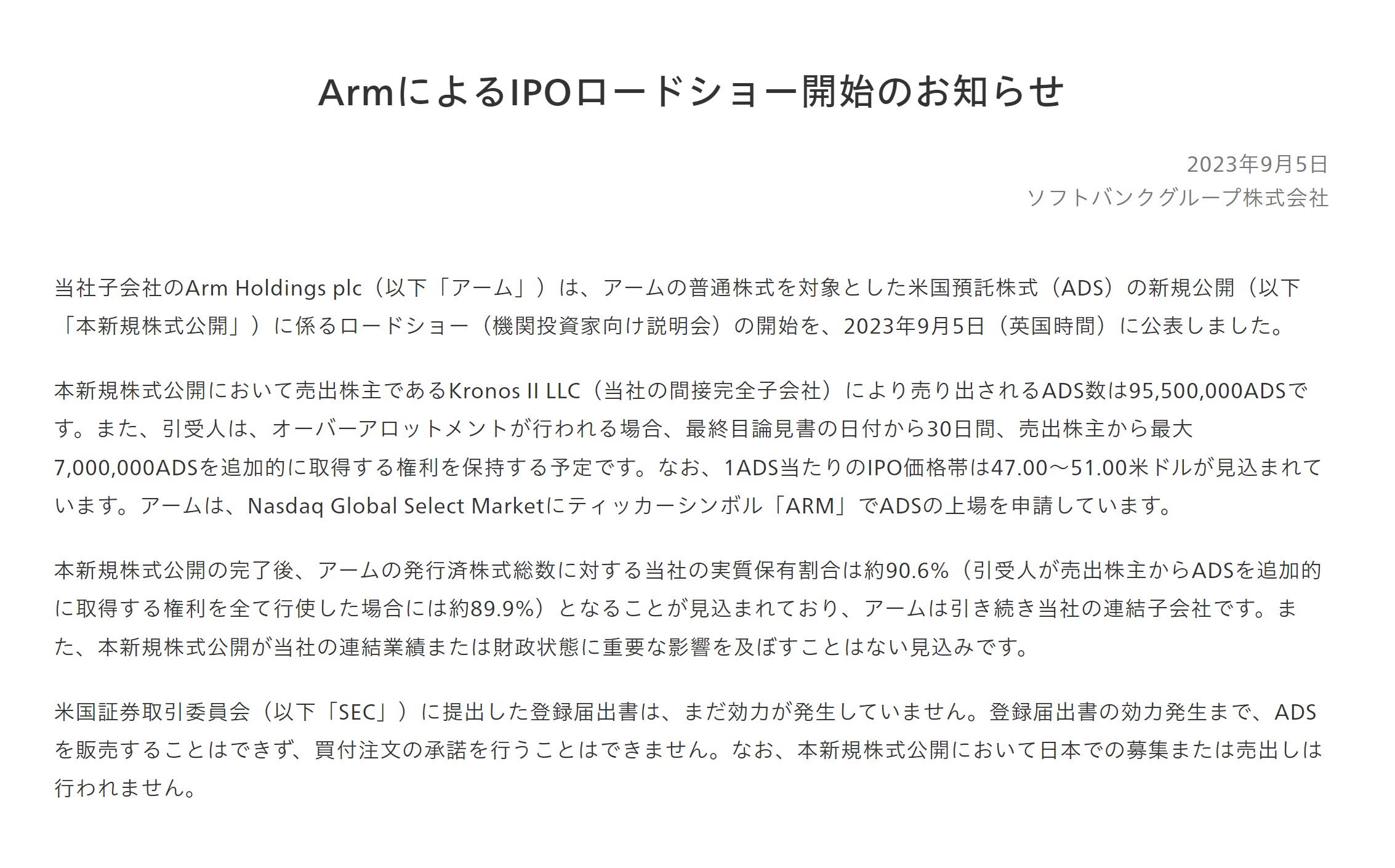 ソフトバンク・グループ(9984)とArm(ARM)のIPOについて