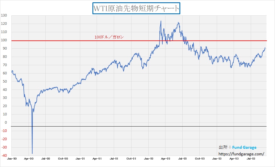 日本では今月に入り補助金が復活したこともあり、ガソリン価格は明らかに低下したように感じているが、実際の原油価格自体は上昇している。石油輸出国機構(OPEC)加盟国とロシアなどの非加盟国で構成する「OPECプラス」の主要生産国であるサウジアラビアとロシアが、年末まで日量130万バレルの減産を延長したことで、供給が逼迫すると取られているからだ。先週末、WTI原油先物の終値は91.20ドルと、2022年10月以来の水準に上昇している。