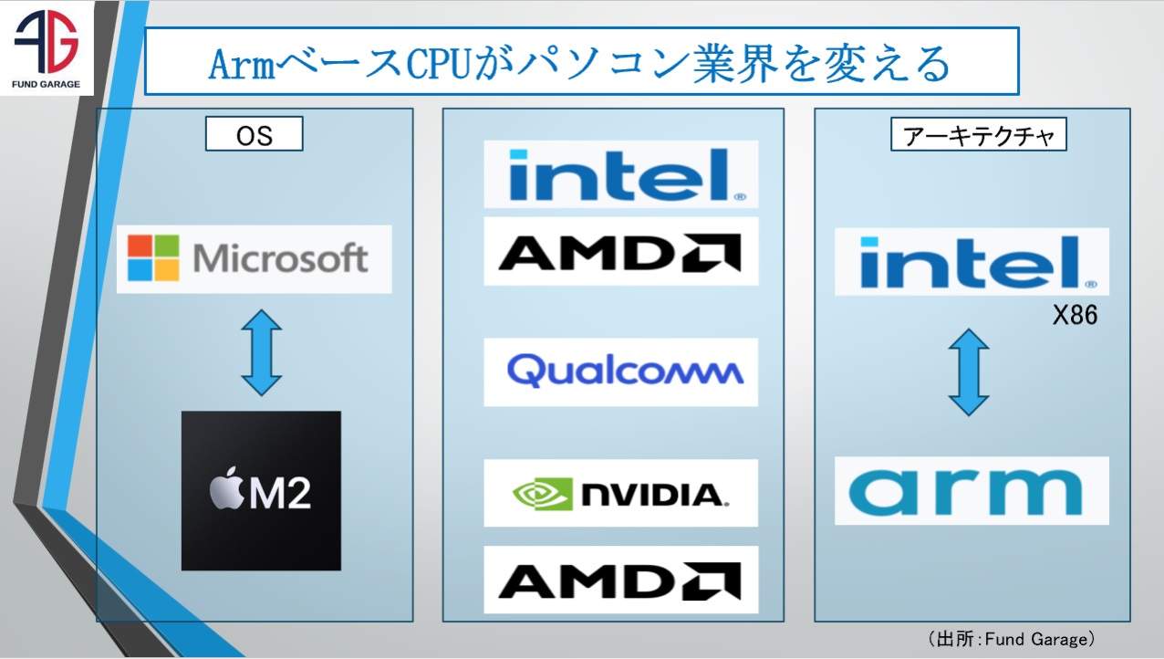 実はこれに先立ち、ロイター通信がエヌビディア(NVDA)もArmアーキテクチャを利用したWindows向けのCPUを開発していると報じて話題になっていた。アドバンスド・マイクロ・デバイス(AMD)も同様らしく、Windows向けのパソコンCPUのアーキテクチャが変わるという大きな時代の流れがあった。