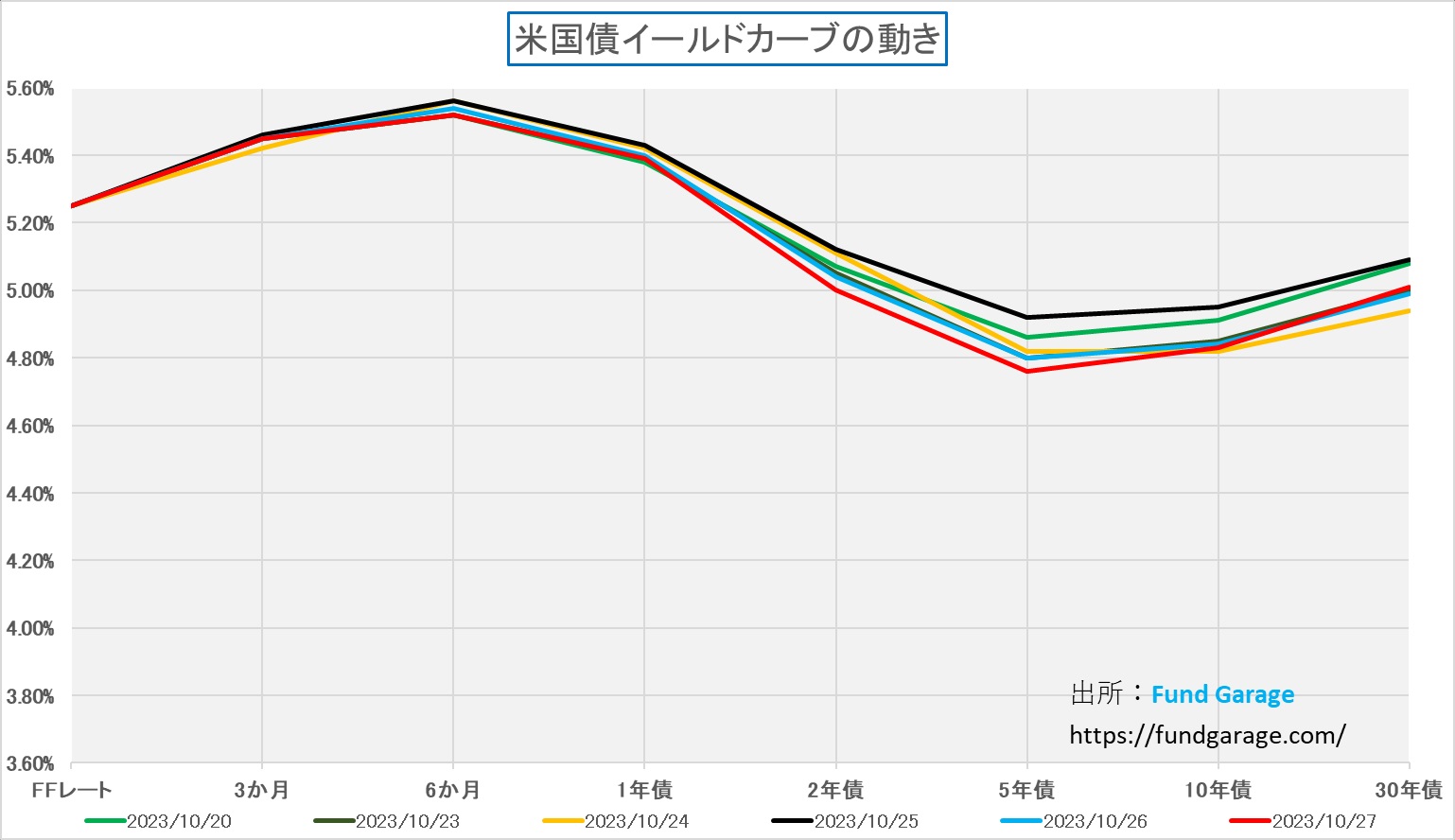 市場コメントでは金利が上がった下がったと説明されてはいるが、実際のこの一週間の金利変動は下記の通り。このイールドカーブで赤い線が先週末金曜日の水準。黒い線が水曜日25日だ。つまり週末の終値が一番金利水準は低いことになる。これを理由にハイテク株が売られたという論法は全く成り立たない。