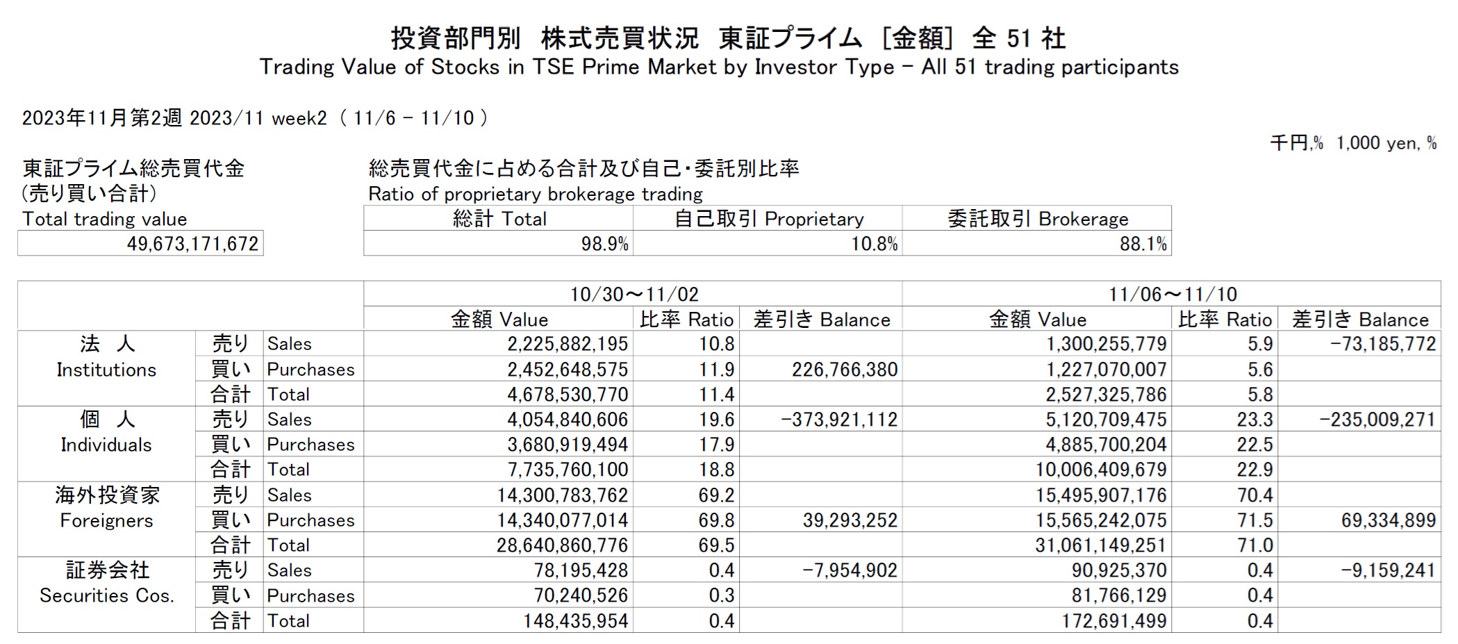 だがその翌日10日に発表された10月の米小売売上高は市場予想ほど落ち込まず、更に9月分も上方修正されたこともあり、2年債以上の期間の債券利回りは軒並み10bp前後上昇した。これを受けて、フィラデルフィア半導体指数ことSOX指数の最大の貢献者(時価総額が最大)であるエヌビディア(NVDA)の連騰記録も10日で終わった。その傍らで発表された10月の米生産者物価指数(PPI)は市場予想に反して前月比で低下し、その低下幅は2020年4月以来の大きさとなった。